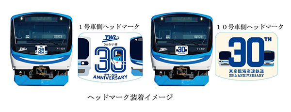 71-000形にはヘッドマークも りんかい線開業30周年記念!記念列車や記念乗車券の発売が決定!