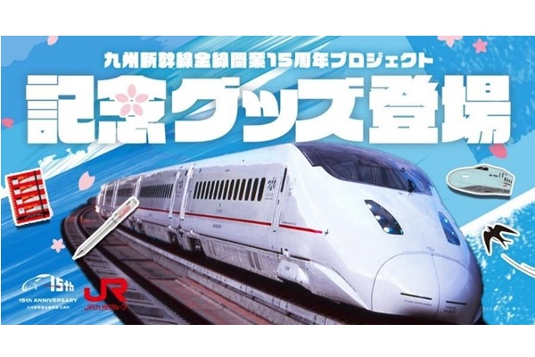 JR九州商事は、九州新幹線全線開業15周年を記念し、3月12日より15周年記念ロゴを取り入れた記念商品を販売している。その第2弾として、今回はファンにも思い入れの深い「つばめ」ロゴを使用した商品を発売する。