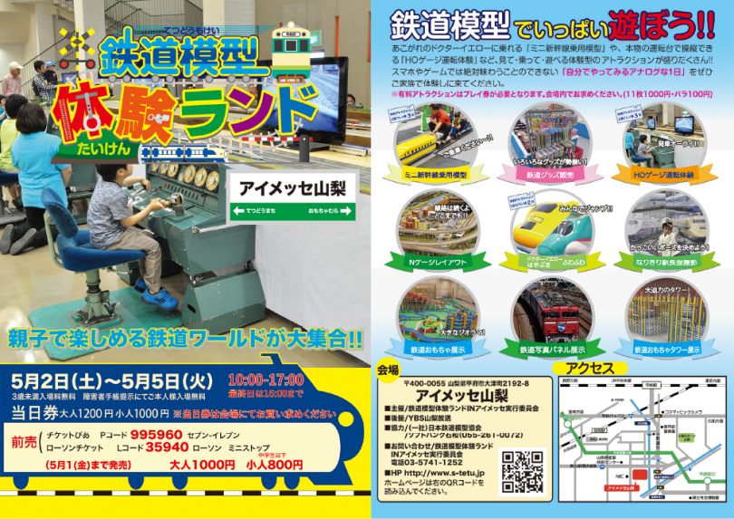 鉄道模型と体験型コンテンツを融合したファミリー向けイベント「鉄道模型体験ランド」が、山梨県甲府市のアイメッセ山梨で5月2日(土)から5月5日(火)までの期間開催される。