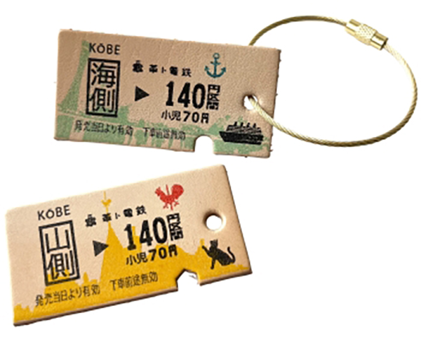お名前、日付、マークを選んでスタンプし、本革の切符キーホルダーを作ります。