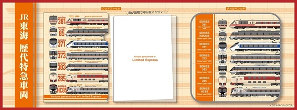 JR東海リテイリング・プラスは、JR東海の歴代特急車両をデザインした「タオルハンカチ」および「クリアファイル」を2026年5月1日から新発売する。