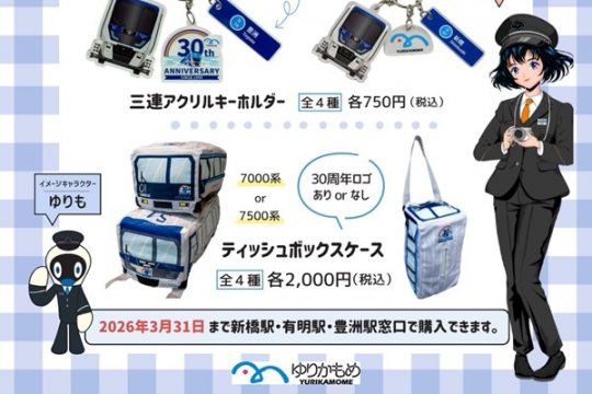 ゆりかもめは、開業30周年を記念して、特別な記念グッズを発売する。記念グッズは、7300系電車型目覚まし時計(税込2,000円)や再生PETエコバック(税込1,000円)、三連ア…