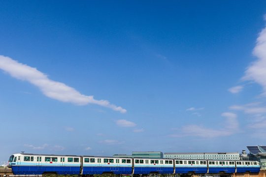 ●天高い秋の青空を背景に、青空カラーのモノレールが往きました。2025.10.17 東京モノレール 羽田空港第3ターミナル~天空橋 P:及川 肇●柔らかい秋の日差しに照らされた、架…