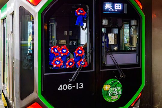 ●半年間、万博会場へのピストン輸送を担った大阪メトロ400系。閉幕が迫る中、運良く撮れたミャクミャク添乗編成。2025.10.10 Osaka Metro 中央線 阿波座 P:安達…