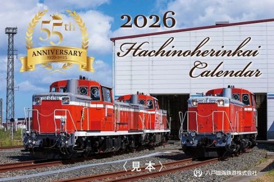 八戸臨海鉄道は、「八戸臨海鉄道 2026カレンダー」を発売する。今年は設立55周年のアニバーサリーイヤー。八戸臨海鉄道線を走る機関車と八戸の風景が楽しめるカレンダーで、売切れ次第…