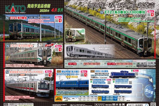 KATOから新製品情報が発表された。今回はE721系0番代・1000番代がそれぞれ新登場した。KATOから満を持しての登場ということで大きく話題になりそうだ。製品展開は0番代が2…