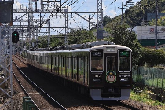 乾 英雄・渡辺俊博独自のデザインの「祇園祭」「天神祭」ヘッドマークを付けて運用されている。'25.7.5 阪急電鉄宝塚本線 雲雀丘花屋敷~川西能勢口 P:乾 英雄(2点共)祇園祭は…