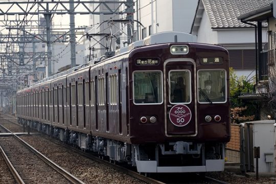 石田哲彦登場時のフルマルーンに復刻され運用を開始した6013編成。ラッピングでHマークが復元された。'26.1.15 阪急電鉄宝塚本線 服部天神(2点共) 阪急電鉄では、6000系…