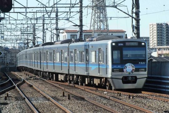 齋藤有希ウマ娘コラボヘッドマークを掲出する7500形7501編成。'26.1.23 北総鉄道 東松戸 北総鉄道と千葉県白井市は、競走馬をモチーフとした「ウマ娘プリティータービー」と…