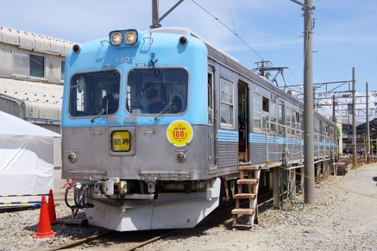 宮島昌之引退予定が発表された8000系モハ8801+モハ8811編成の屋外展示と運転台体験乗車。浅野川線は前日の2025年5月10日に「開業100周年」を迎え、同編成にも記念のヘッ…