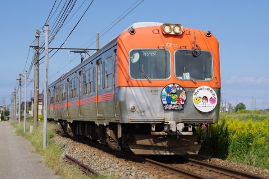 宮島昌之2024年に続き、元京王3000系のモハ7701+クハ7711編成にヘッドマークを掲出。'25.10.1 北陸鉄道石川線 西泉~新西金沢 北陸鉄道の石川線では、7000系7…