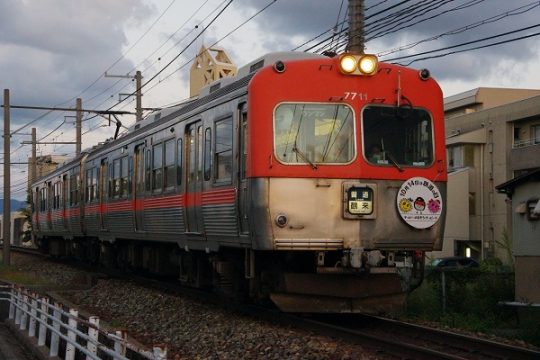 宮島昌之毎年恒例の臨時列車、「妖怪電車」。お決まりのモハ7701+クハ7711編成で運転され、ヘッドマークは昨年に続き「妖怪電車」オリジナルと「鉄道の日PR」の2枚看板となった。'…