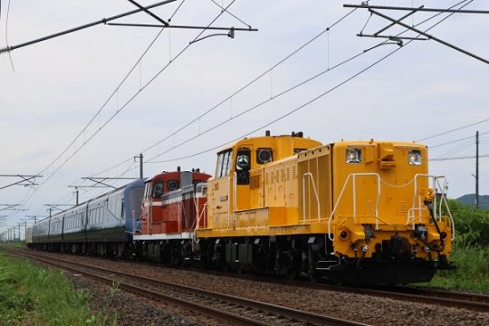 佐藤直幸試運転で、次位には原色のDE15 2515が、代わりを務めた。'25.7.26 函館本線 茶志内〜美唄 2025年7月26日、THE ROYAL EXPRESSの試運転に異…