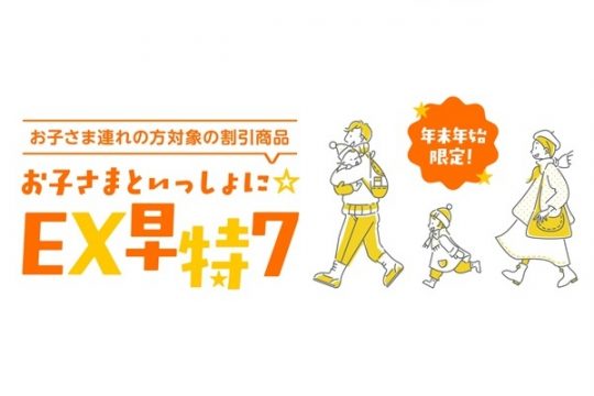JR東海は、東海道・山陽・九州新幹線ネット予約&チケットレス乗車サービス「エクスプレス予約」・「スマートEX」において、年末年始の期間限定で「お子さまといっしょに☆EX早特7」を…