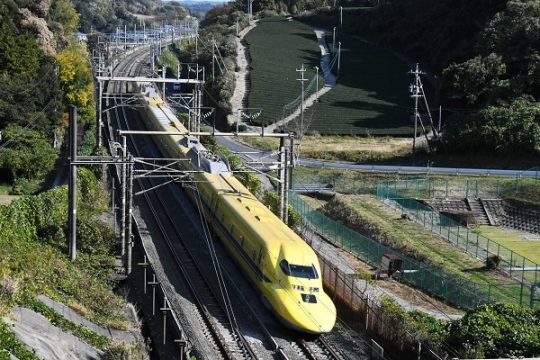 大谷真弘新幹線923形「ドクターイエロー」が、博多総合車両所岡山支所でのイベントで回送された.'25.11.21 東海道新幹線 静岡~掛川(2点共) 2025年11月21日、博多総…