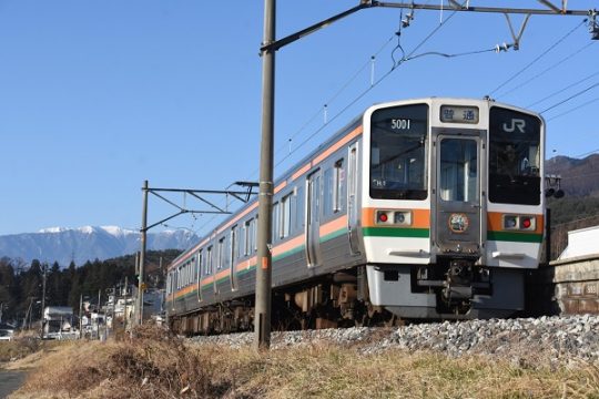 尾名高大蔵'26.2.22 飯田線 七久保~伊那本郷213系5000番代H13編成に惜別のヘッドマーク。'26.2.22 飯田線 沢渡(2点共) 2026年3月のダイヤ改正で運用を…