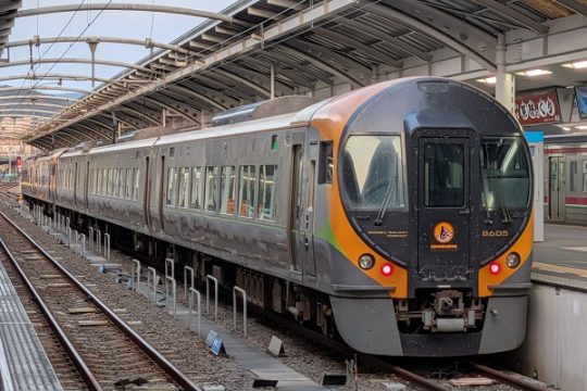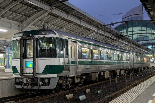 植松 繁中央3号車に半室グリーン車が連結されている。'25.8.31 予讃線 高松 所定では松山運転所所属8600系モノクラス4両編成で運転される予讃線特急「いしづち103号」だが…