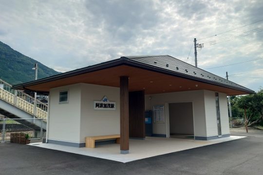 植松 繁交流スペースに作られた机と椅子で勉強をしながら列車を待つことができる。'25.8.23 徳島線 阿波加茂(2点共) 徳島線阿波加茂駅は、特急「剣山」や観光列車「藍よしのがわ…