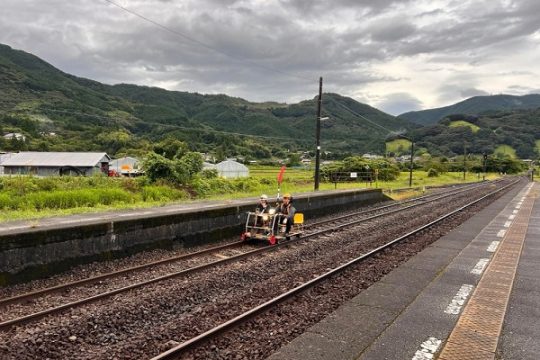 中村年秀斗賀野駅を通過する軌道バイク。'25.9.5 土讃線 斗賀野 2025年9日5日、土讃線が台風15号の影響で伊野~窪川間で運転を見合わせている際、作業員が軌道バイクで線路を…