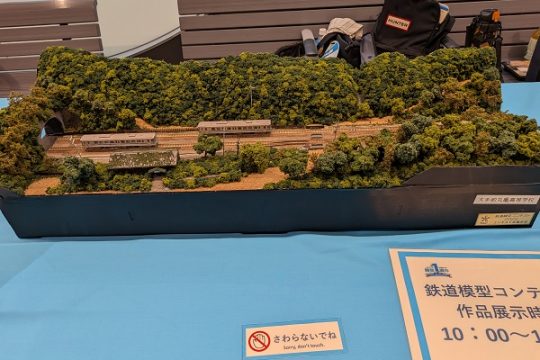 植松 繁社員有志によるNゲージやプラレールの模型運転展示が行われた。記念切手や伊予灘ものがたりで使われていた食器を購入。'25.9.28 予讃線 松山(2点共)「全国高等学校鉄道模…