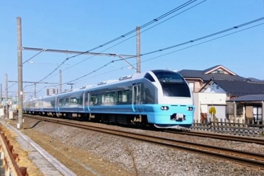 大森岳人武蔵野線、常磐線内では通常とは逆向きの1号車グリーン車を先頭に成田へ向かう 特急「開運成田山初詣栃木号」。'26.1.18 武蔵野線 東浦和~東川口 2026年1月18日、…