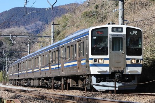 大久保広樹真冬日に行われた211系N608編成、クハ211-2009以下の「横須賀色をイメージした帯色」に変更後の試運転。E131系導入も噂される中、6両編成の検査出場試運転自体、…