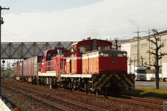 大谷真弘DD200-19が黒崎発チキ5500形3両に50メートルレール28本積載して静岡貨物へ輸送した。'25.11.24 東海道本線 掛川~菊川(2点共) 2025年11月23日…