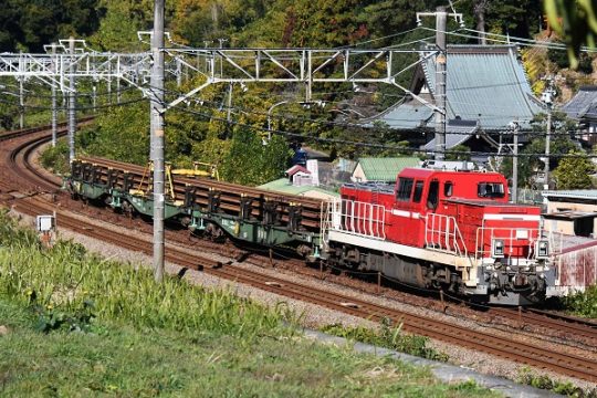 阿部雄司秋の青空の下、赤い機関車に牽かれた赤い編成がゆく。'25.11.19 東海道本線 逢妻~大府(2点共) 2025年11月19日から、日本車輛製造豊川製作所にて製作されていた…
