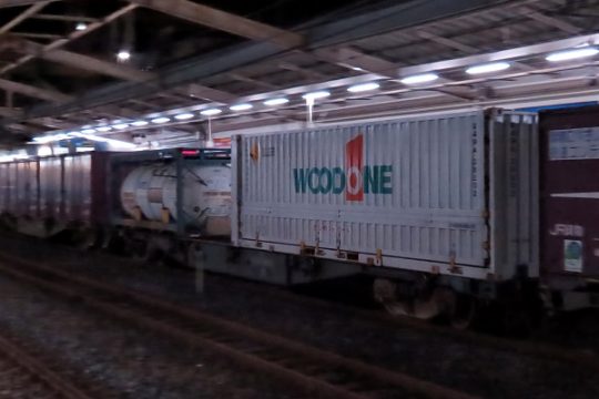 藤倉顕治住宅建設企業のコンテナは初見参。79列車を牽引するのは、EF210-317だ。'25.11.1 武蔵野線 東浦和 2025年11月1日運転の武蔵野線79列車に、広島の住宅建…