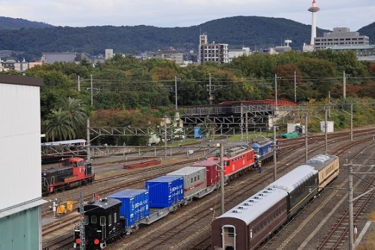 服部ひろみ「桃太郎」に牽かれてやってきたバラエティに富んだ展示車両の編成。'25.11.4 京都府京都市 京都鉄道博物館(2点共) 2025年11月4日に、11月6日から展示される…