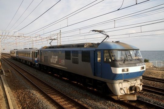 石田哲彦須磨海岸をEF210-157号機牽引で九州へ向かうキハ185系。'26.1.15 山陽本線 須磨~塩屋 2026年1月15日、JR四国キハ185系2両のJR九州への譲渡にと…