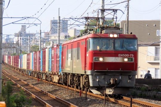 藤倉顕治3081列車をエスコートするEH500-75。'25.10.4 東北本線 土呂~東大宮(3点共) 2025年10月4日運転の東北本線3081列車に、キュービクルや変圧器など…