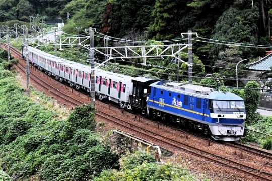 大谷真弘EF210-129が牽引で、東京地下鉄18000系18117編成10両が甲種輸送された。'25.10.24 東海道本線 掛川~菊川(2点共) 日立製作所笠戸事業所で新造され…