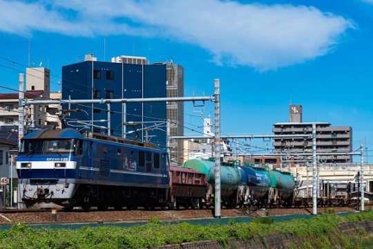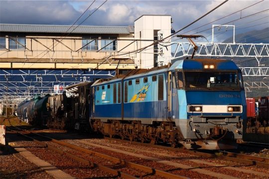 大谷真弘新鶴見機関区所属のEF210-122が、コキ105形2両とタキ43000形1両を牽引して西下した。'25.9.28 東海道本線 菊川~掛川(2点共) 2025年9月28日、…