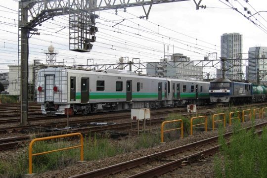田部井毅大新鶴見信号場に停車中のHB-E220系と、8571列車のEF210-162による桃太郎との顔合わせが実現した。 HB-E220系3両が金太郎によるEH500-54との連結…