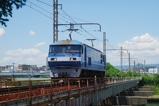石田哲彦近畿車輛に送り込まれるEF210-114。5連化されEF210-114に牽引され神崎川橋梁を行く東武6150編成。'25.7.15 片町線(城東貨物北連絡線) 神崎川信号場…