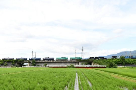 大谷真弘川崎貨物~稲沢までEF210-143が、9863列車でタキ43000形5両とコキ105形を輸送した。'25.7.13 東海道本線 菊川~掛川 2025年7月13日、新鶴見機…