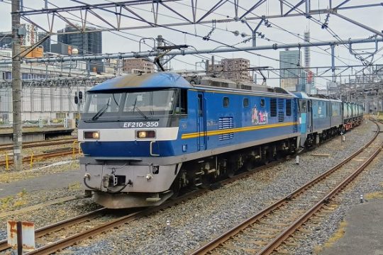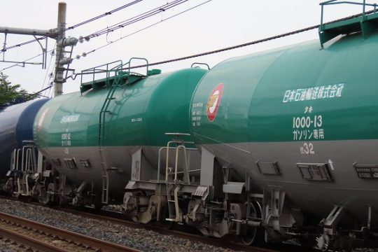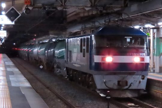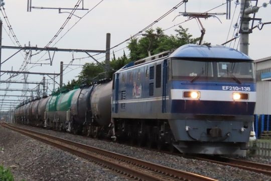 藤倉顕治8883列車をEF210-133号機がエスコートし、タキ1000-13(手前)と1000-12の連番が隣り合わせに連結された。さらに、最後尾を飾ったのは、久々に連結された銀…