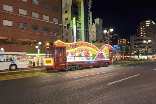 中村年秀夜の走行は目立っていた。'25.10.29 鹿児島市交通局 高見馬場~天文館前 鹿児島市電では、第74回おはら祭りを盛り上げるため、2025年10月21日~11月3日まで花…