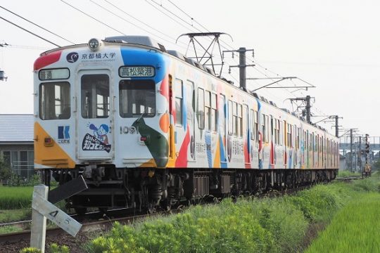 植松 繁京都橘大学をPRするラッピングに思わず目を奪われる。'25.8.24 高松琴平電気鉄道琴平線 円座~岡本 京都橘大学は京都市山科区にあり、香川県ではあまりなじみがない。そこ…