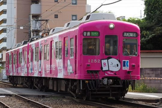 植松 繁ラインカラーと異なる色鮮やかなラッピング車両に注目が集まる。'25.10.18 高松琴平電気鉄道長尾線 花園~瓦町 高松琴平電気鉄道長尾線1200形(1251-1252)に…
