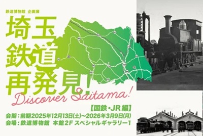鉄道博物館は、企画展「埼玉 鉄道再発見!~Discover Saitama~」を2025年12月13日(土)から2026年6月15日(月)にかけて開催する。 2025年3月、大宮…
