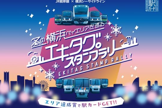 JR根岸線と横浜シーサイドラインを舞台に、「冬の横浜ベイエリアを巡るエキタグスタンプラリー」が開催される。根岸線エリアのデジタルスタンプのイメージ。現行のE233系だけでなく、な…