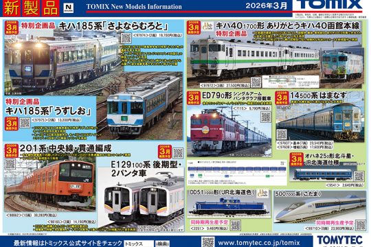 TOMIXから新製品ポスターが発表された。今回は185系からATCを搭載した編成をプロトタイプとした「はまかいじ・踊り子色」と、B7編成のほか、ハイグレード仕様のキハ20系シリー…