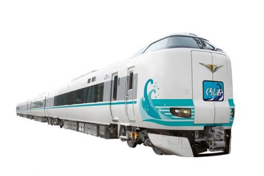 京都・新大阪~新宮間を結ぶ特急「くろしお」が運行開始から60周年を迎えることを記念して、JR西日本ではラッピング列車を運行する。ラッピング車両の外観。381系が纏っていた「くろし…