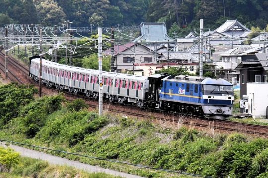 玉木裕一生憎の雨の下、普段は通らない中央線を快走し、EF65 2092にエスコートされ、西武101系1241編成が小手指へと北上する。'25.12.14 中央本線 豊田~日野(2点…