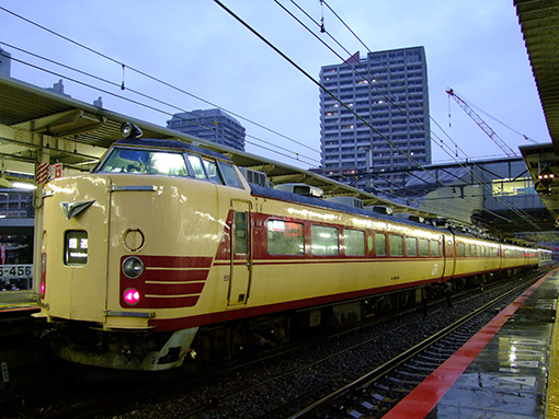 中司純一(兵庫県)雨の尼崎駅7番線で開通待ちのクロハ183-803他B63編成。‘13.11.15 福知山線 尼崎 今春のダイヤ改正で運用離脱した福知山電車区183系準国鉄色B編成のうち、福知山電車区に留置されていたB63編成が、11月15日(金)の回7770Mで吹田総合車両所へ回送された。基本編成4連のみでの自走回送であった。