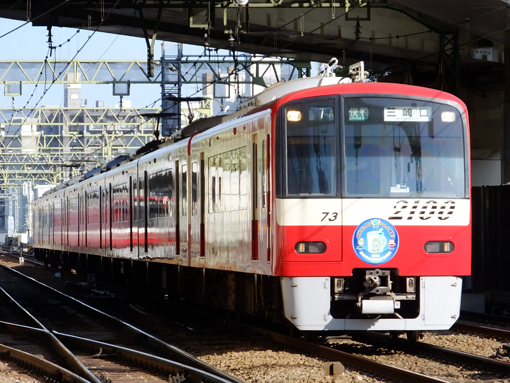 加藤弘樹(神奈川県)ひとり最低3日分で9リットルを呼びかけるラッピング。‘14.1.28 京浜急行電鉄本線 南太田―井土ヶ谷 1月27日~3月29日の2か月間、京急と横浜市水道局が協働し、飲料水備蓄を呼びかける”9リットル備蓄号”が運行される。ラッピングは2173編成に施され、期間中はコラボ缶の販売や備蓄啓発イベントも行われる。
