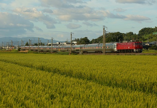 鶴井雅人(岩手県)上野を発って約25時間、間もなく夕刻の湯沢に到着。‘18.8.18 奥羽本線 下湯沢―湯沢新在併走区間では秋田新幹線〈こまち〉との離合・追い抜きシーンも。‘18.8.18 奥羽本線 神宮寺 8月17日から18日にかけて、田端運転所所属のEF81 139と尾久車両センター所属のE26系を使用した湯沢行きの〈カシオペア紀行〉が、上野~青森~秋田~湯沢間(東北本線・IGRいわて銀河鉄道線・青い森鉄道線・奥羽本線経由)で運行された。