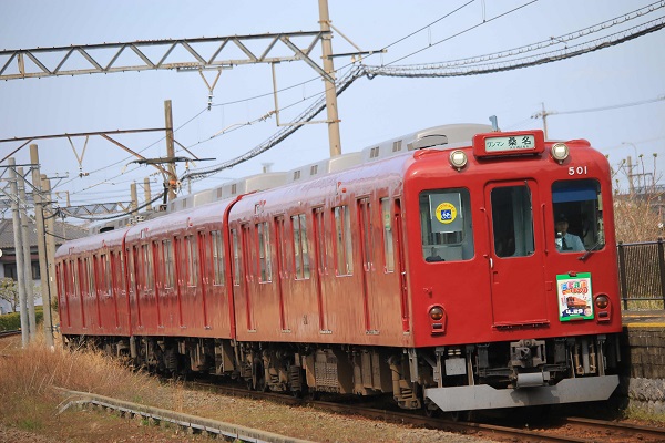 2025年のポスターは、600系D06編成(復刻ラビットカー塗装)と、養老鉄道7700系TQ12編成(緑歌舞伎)の写真が採用された。同社の主力車種と次期主力車種が採用されるデザインは、まさに両雄揃い踏みだ。